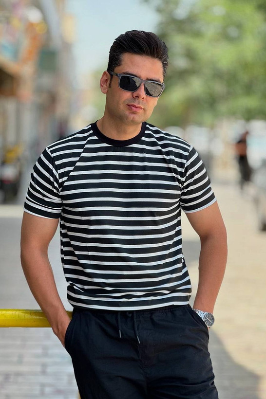 تیشرت با طرح راه راه دوخته شده با الیاف نخ و پنبه با کیفیت بالا که مانع از عرق سوز شدن بدن می شود ، دارای میزان پلاستیک بسیار کم که مناسب فصل گرما می باشد، همچنین به علت پلاستیک کم مانع از ایجاد بار های الکتریکی می شود . رنگ تیشرت بعد از شست و شو ثابت می ماند و تغییر رنگ نمی دهد .