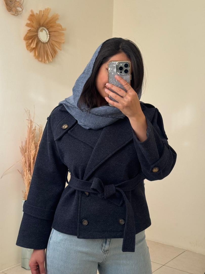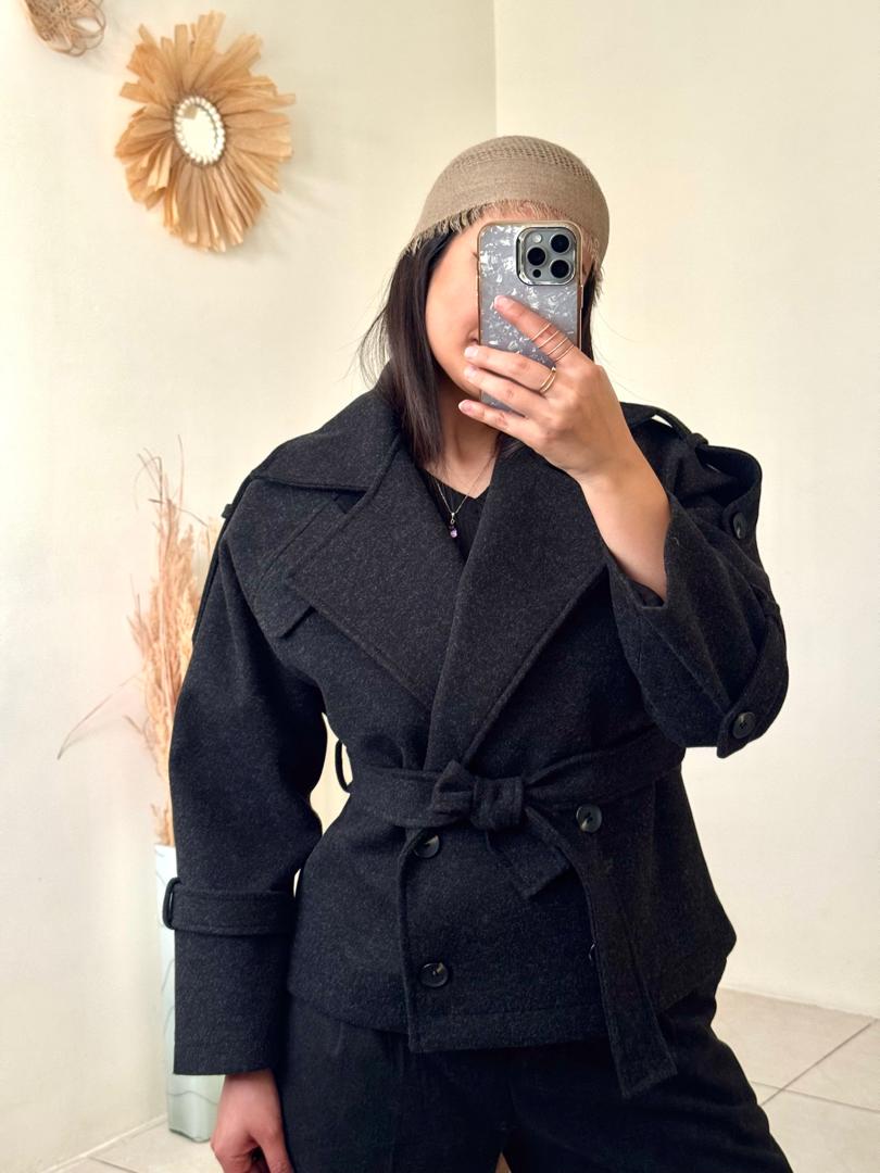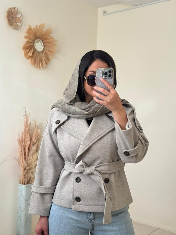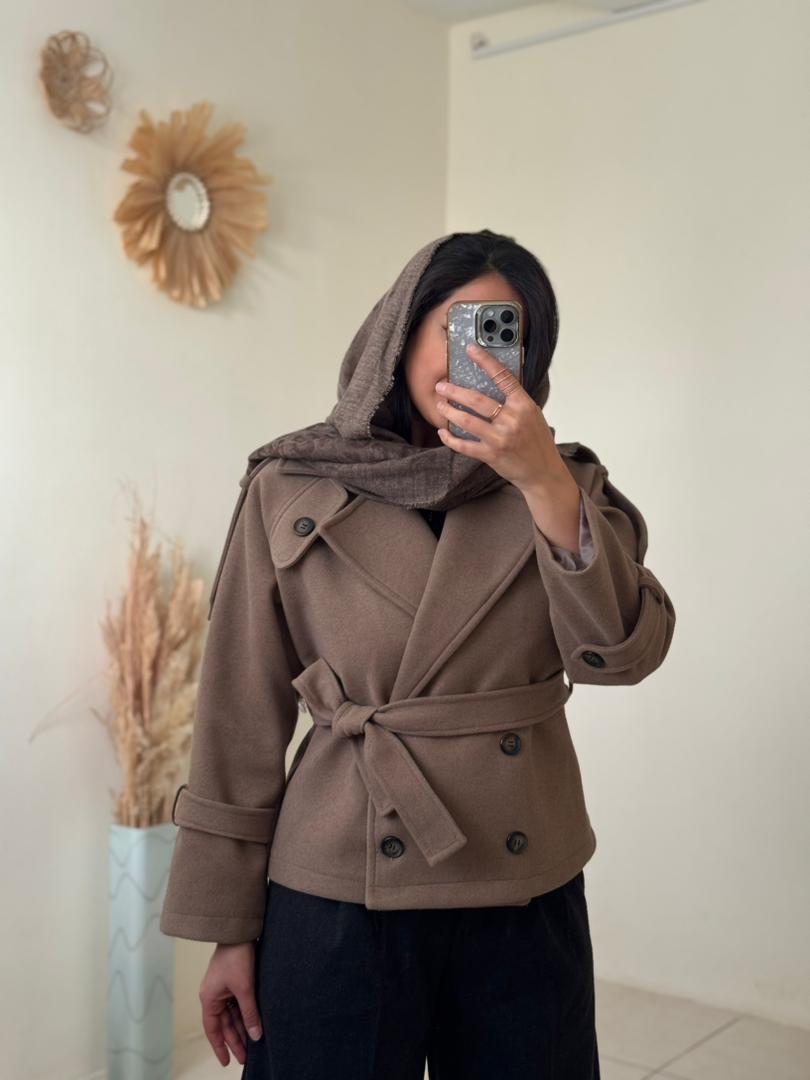 • مدل: کمردار، دو دکمه، یقه انگلیسی