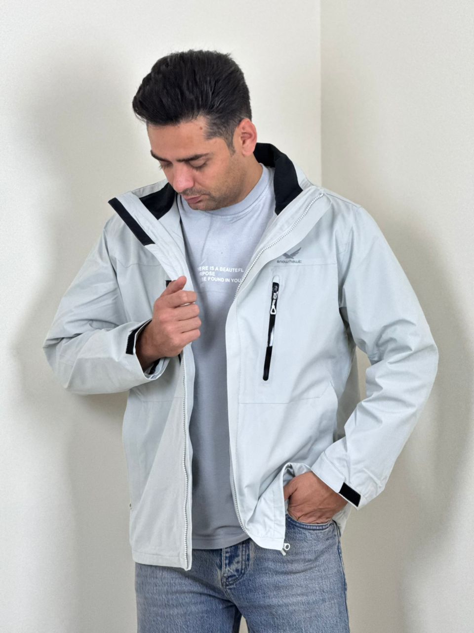 کاپشن پر دوپوش زنانه و مردانه اسنوهاک جنس از پر اردک سفید برای گرمای مداوم و سبک دارای یقه ایستاده برای مقاومت در برابر سرما