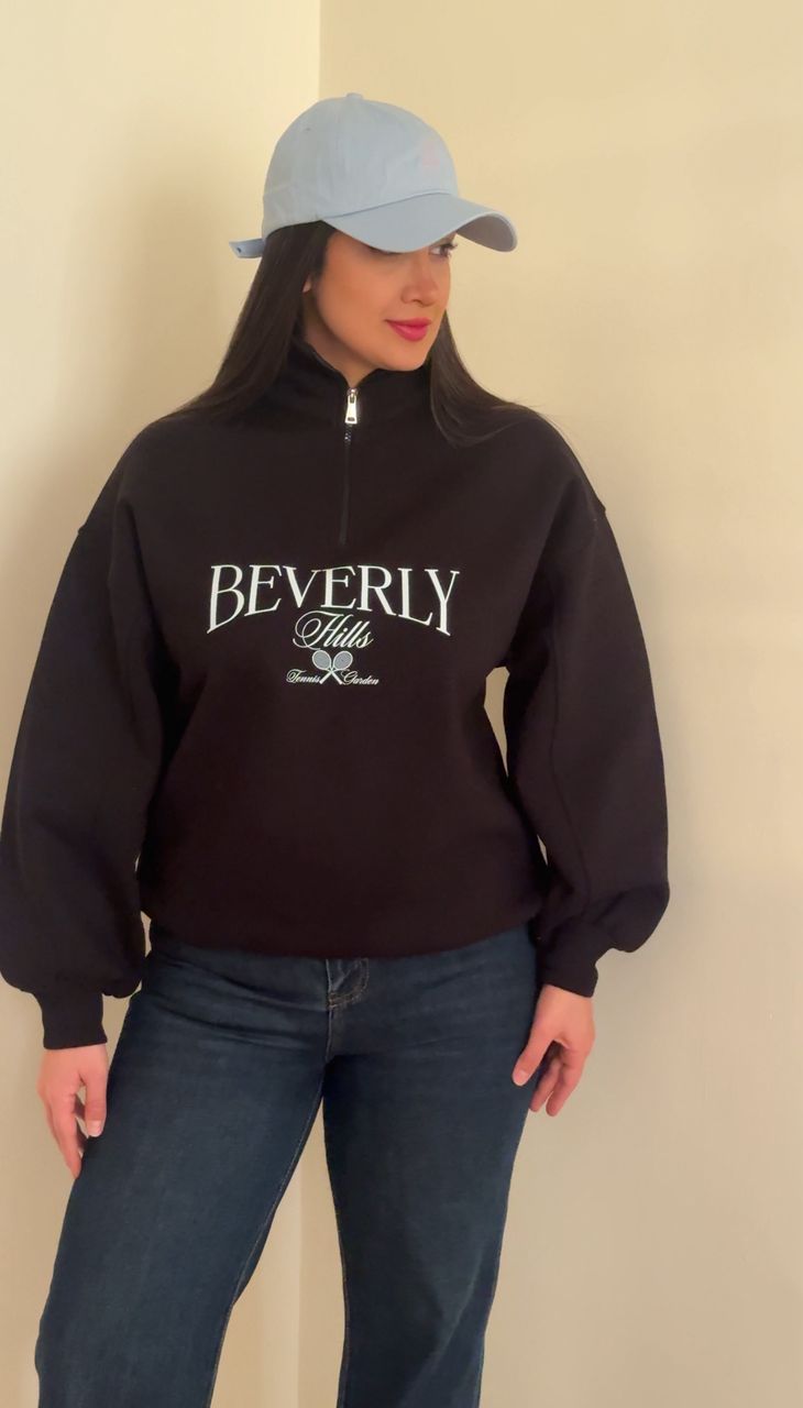 نیم زیپ سهنخ پنبهای داخل کرکی، دارای بافت نرم و لطیف که گرمای دلپذیری ایجاد میکند. طراحی آن به سبک اسپرت و روزمره بوده و با چاپ نوشتهی “Beverly Hills” روی سینه جلوهای خاص و شیک دارد. یقهنیمزیپ و سرآستین و پاییندست کشبافت باعث میشود تنخور آن مرتب و زیبا بایستد. مناسب برای فصول سرد سال و استایلهای کژوال و خیابانی.